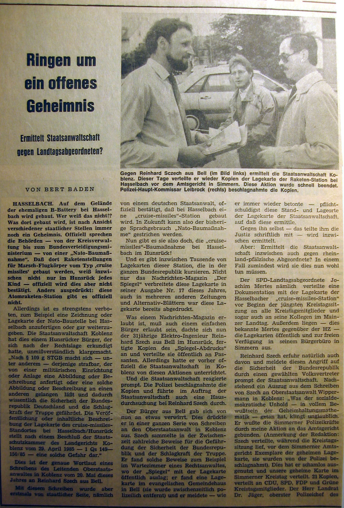 Die Veröffentlichung der Lagekarte des Cruise-Missiles-Standortes bei Hasselbach/Hunsrück