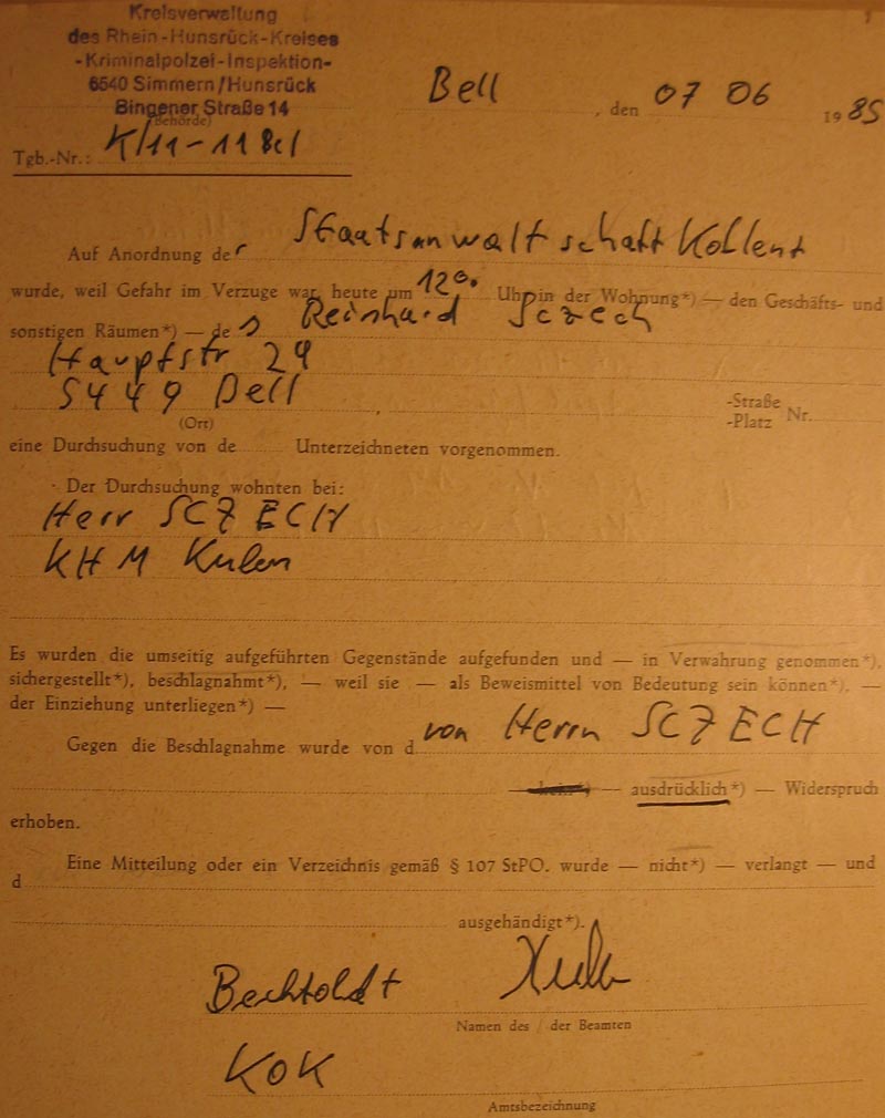 Auf meine darauffolgende Beschwerde bekomme ich von der Kriminalpolizei alle beschlagnahmten Kopien und Orginal zurück.