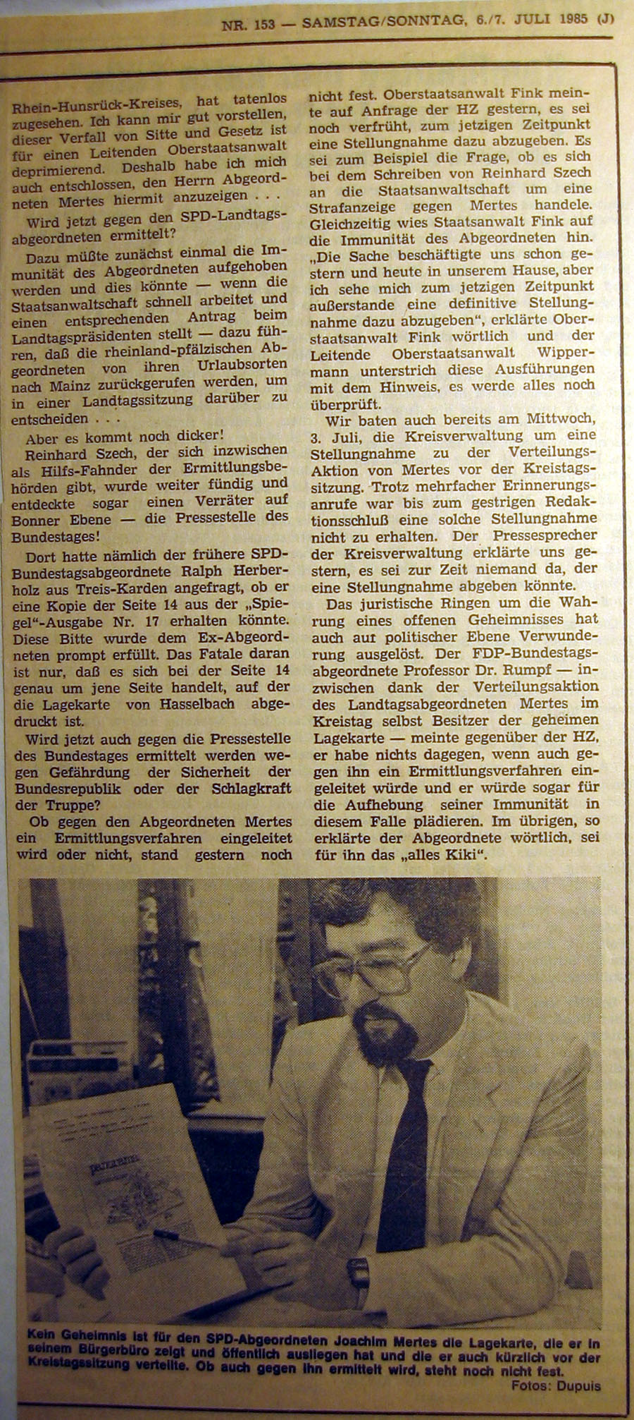 aus der Hunsrücker Zeitung vom 6. Juli 1985.